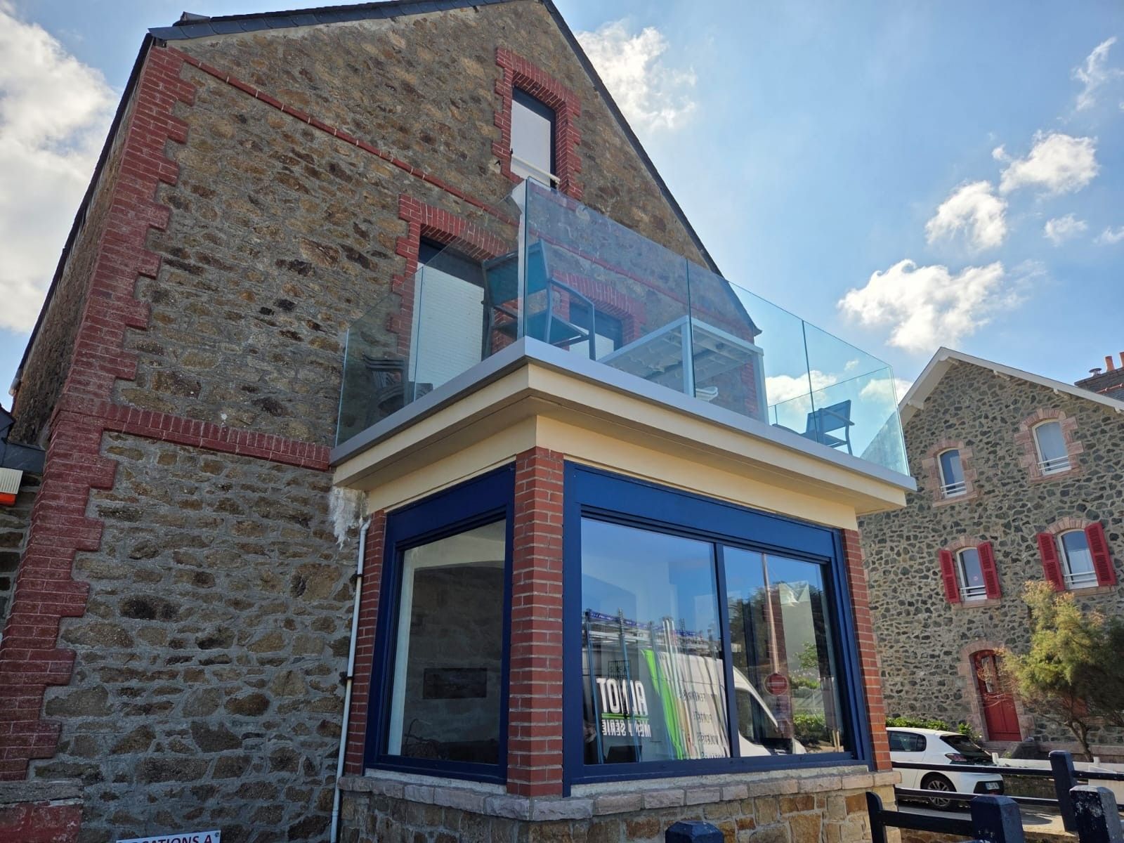 Remplacement de l'ancien garde-corps aluminium par un garde-corps vitré de marque SABCO.